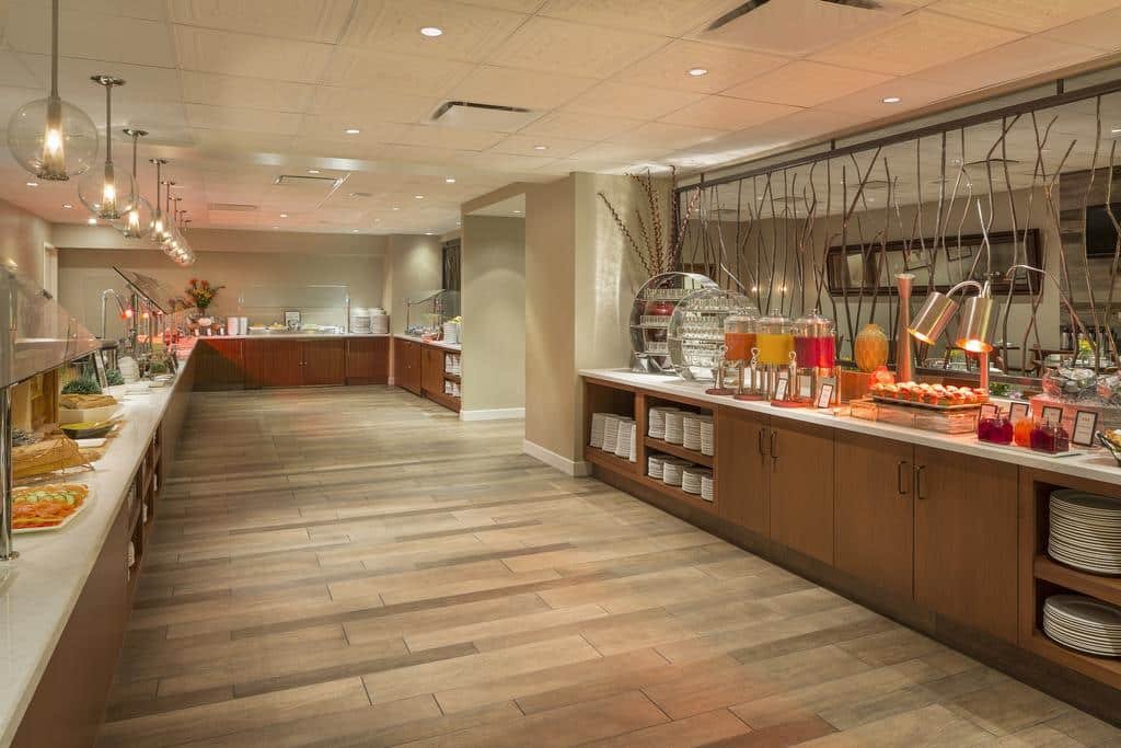Paráfrasis: El desayuno no está incluido en el precio de la estancia y resulta un poco caro (USD 45.00 por persona), pero vale la pena por la diversidad y la calidad del servicio. Si prefieres ahorrar en alimentos durante tu estadía en el hotel, existen alternativas más económicas. Una de ellas es Herb n’ Kitchen, ubicado en el vestíbulo, que ofrece una amplia selección de ensaladas, jugos, cervezas, panes y sopas para comidas rápidas, desde el desayuno hasta la cena. Otra opción es cenar en Urban Tavern Dinner y Bar, que cuenta con un menú variado y una extensa carta de vinos regionales. Con tantas alternativas disponibles, no tendrás problemas para encontrar un lugar donde comer después de hacer tus compras.